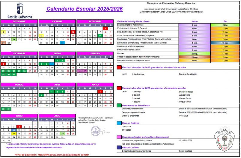 Calendario Escolar para el curso 2025-2026.