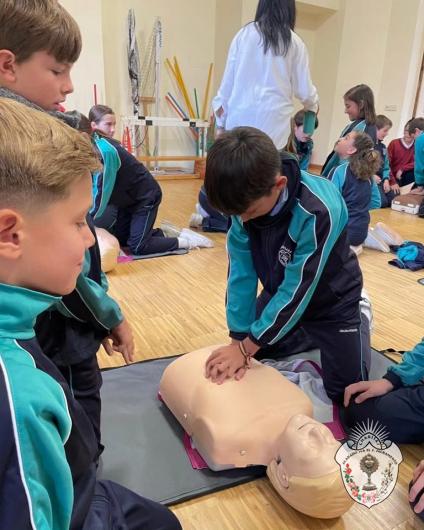 Los alumnos de 5º y 6º de Primaria se forman en Primeros Auxilos con una sesión teórica y una sesión práctica sobre RCP, Maniobra de Heimlich, Postura Lateral de Seguridad,... ¡Preparados para salvar vidas!