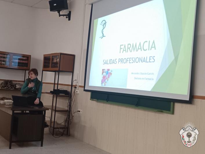Hoy los alumnos de 1° y 2° de Bachillerato han participado en una charla formativa sobre Farmacia como salida académica y profesional, impartida por Dña. Mercedes Chacón Garcés, doctora en Farmacia.